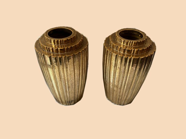 Lampe triangulaire en céramique noire, pied en laiton doré