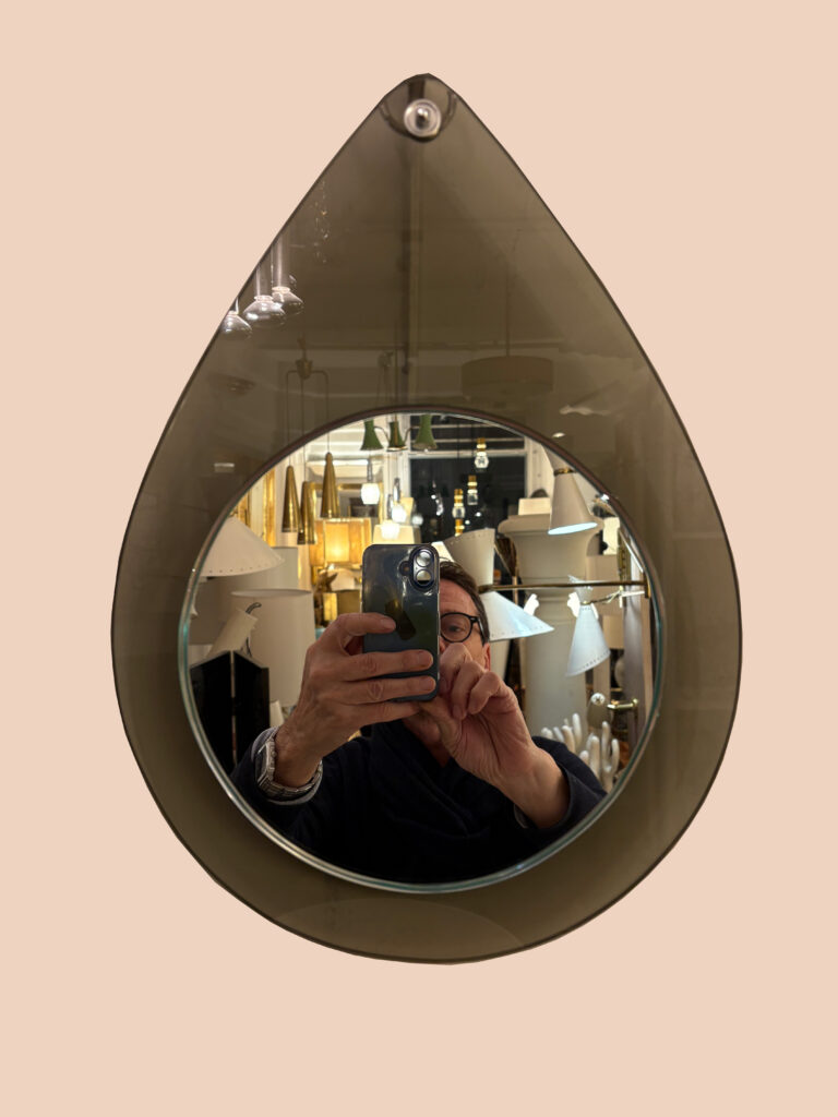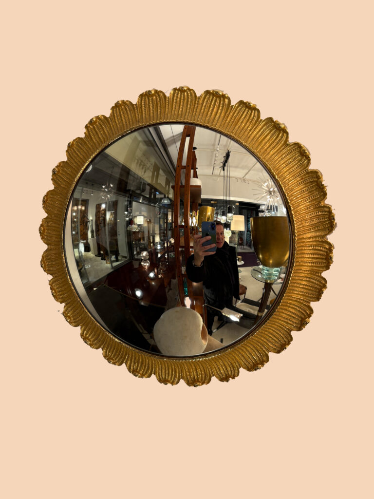 Miroir à fronton en bois et cuivre estampé doré, XVIIe