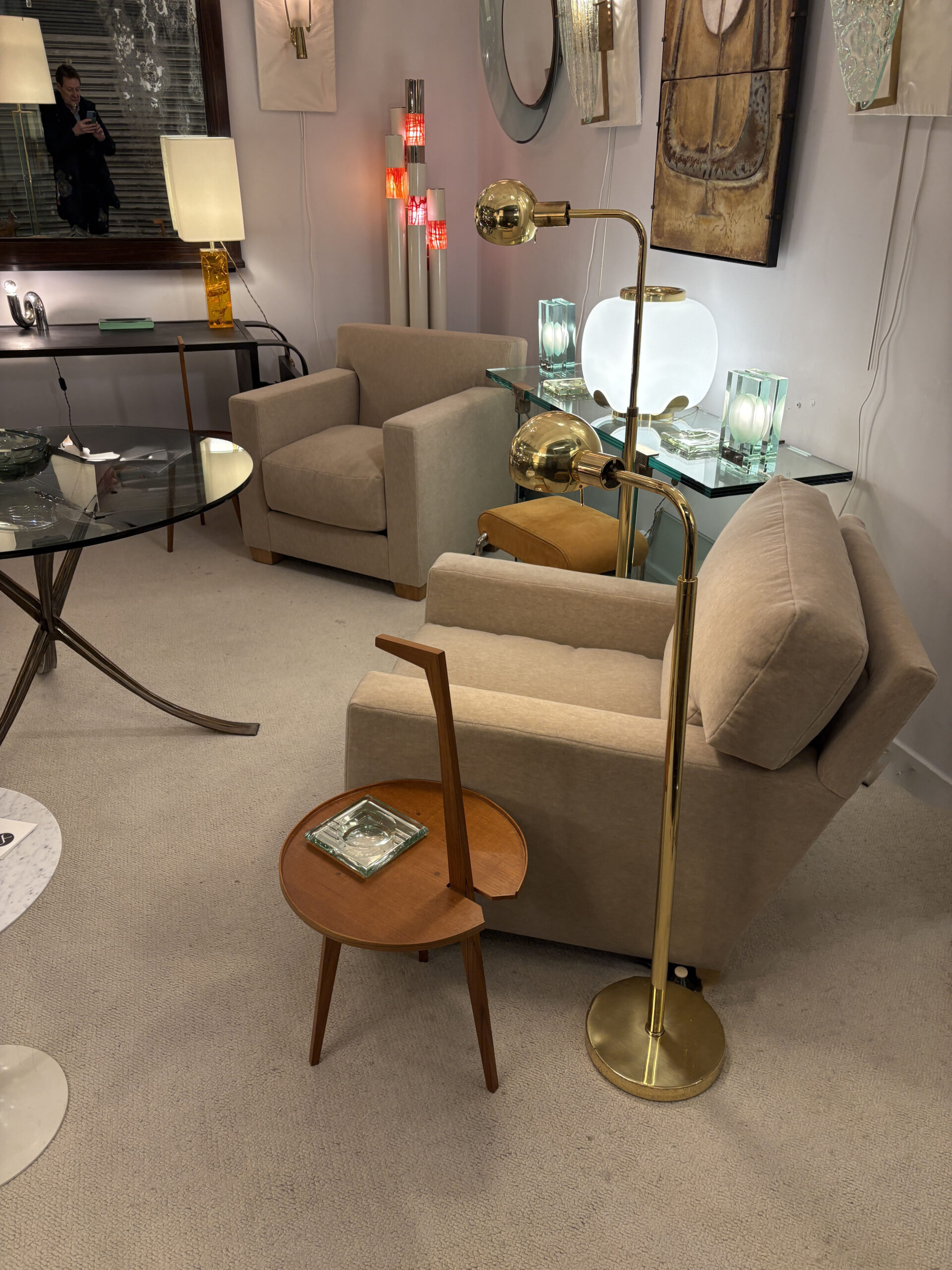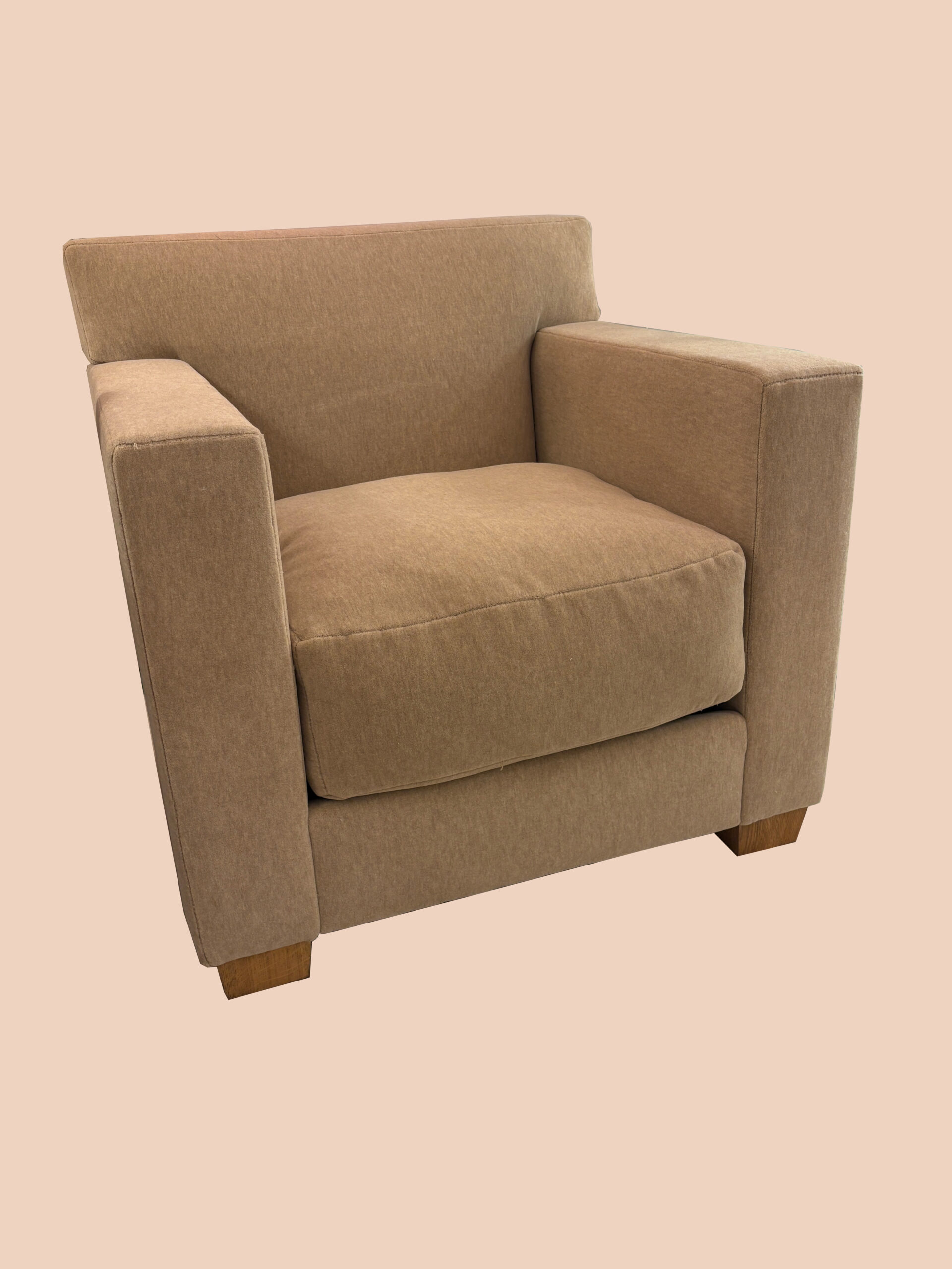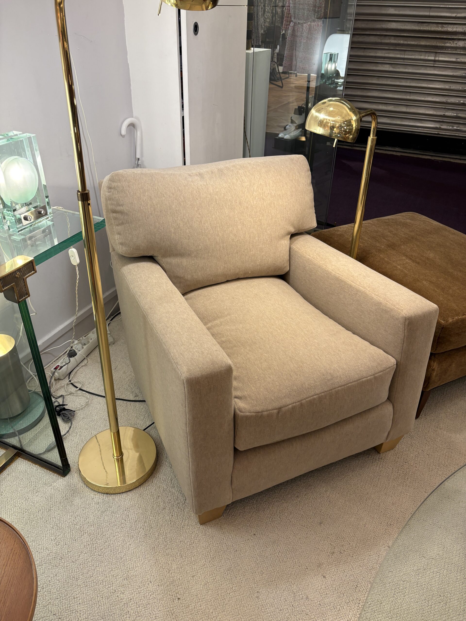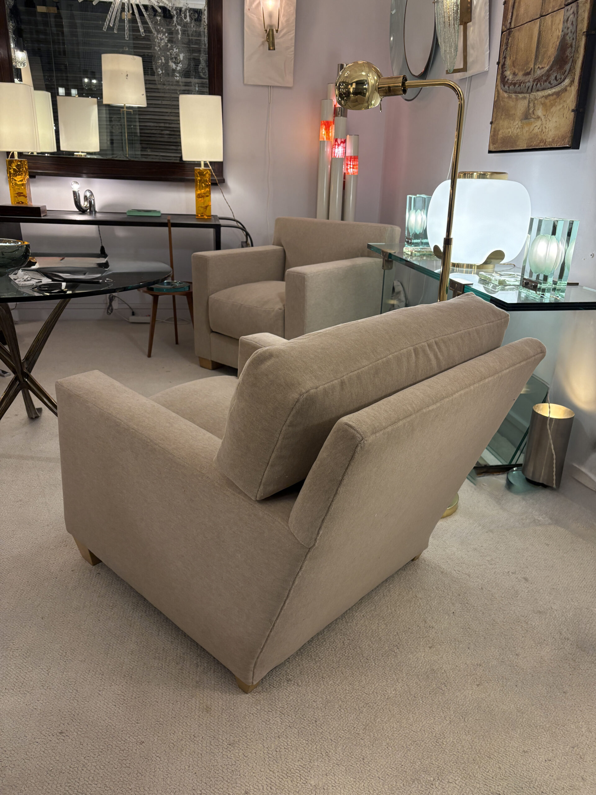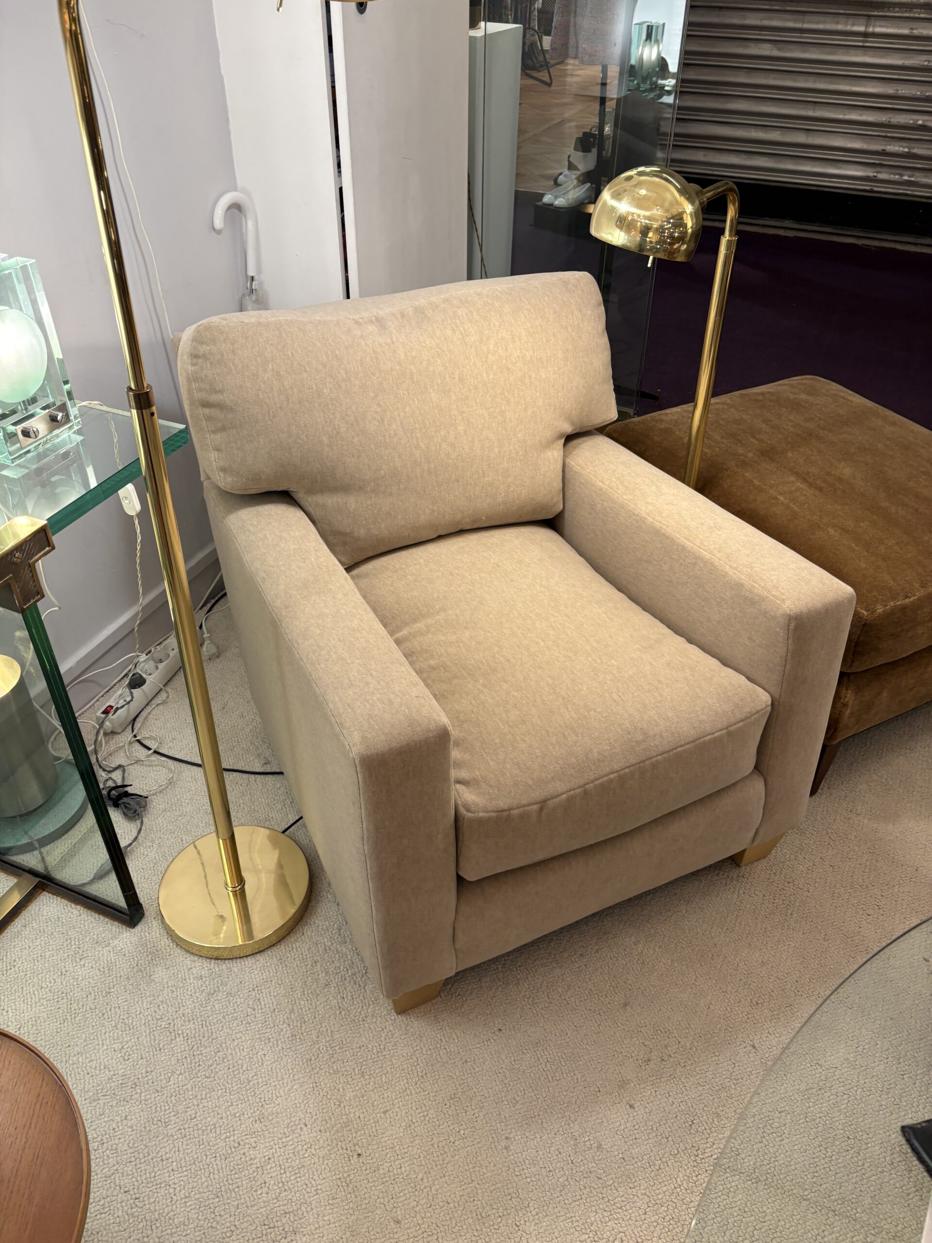 Fauteuil design Jean-Michel Frank en velours de mohair beige chiné édition Ecart International.