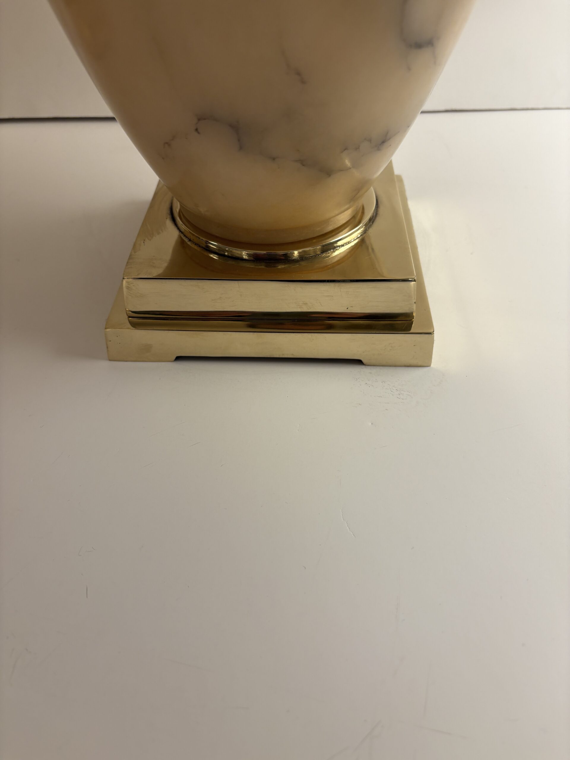 Paire de lampes époque Art déco en albâtre et socle en laiton repoli.