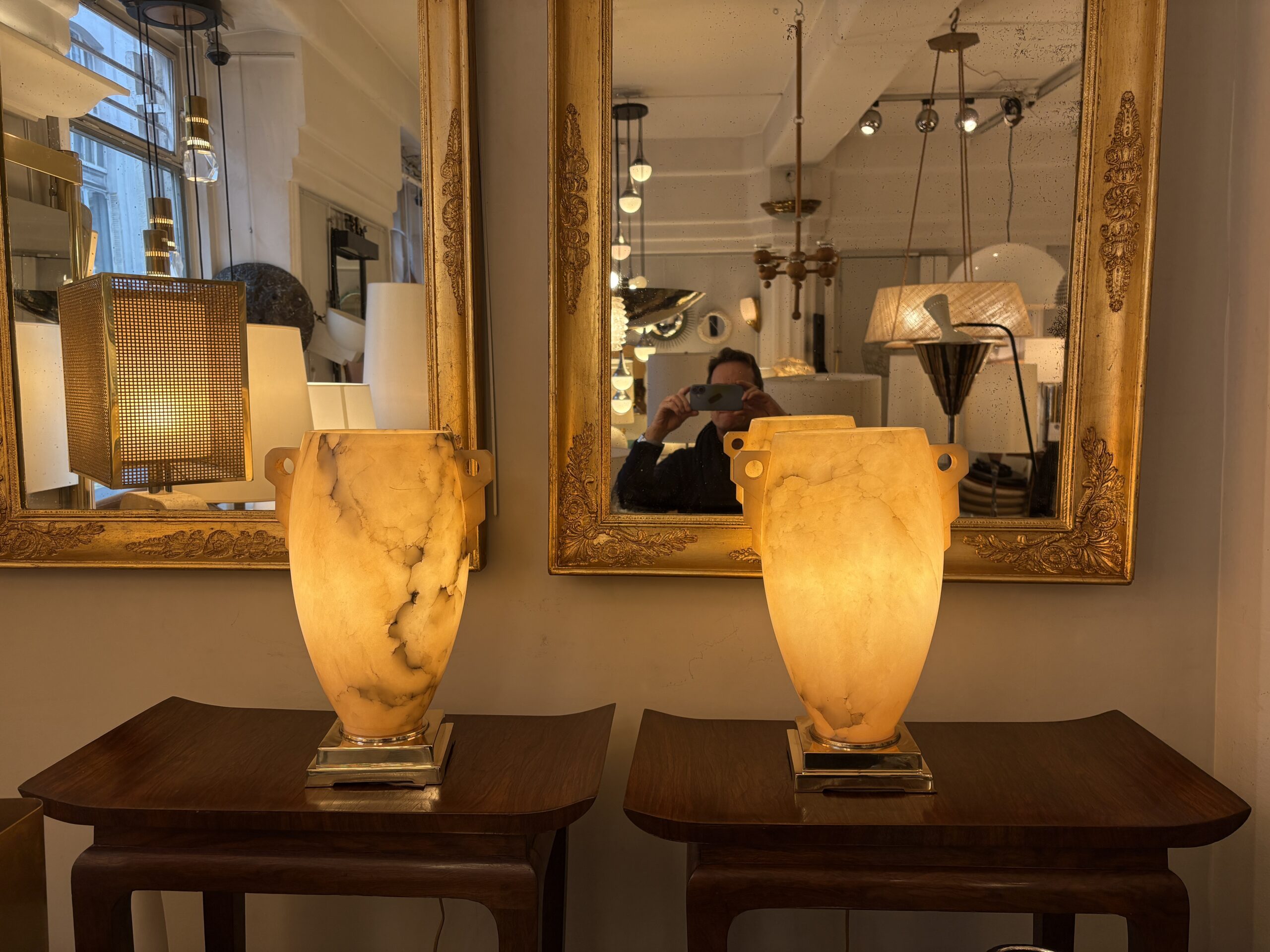 Paire de lampes époque Art deco en albâtre