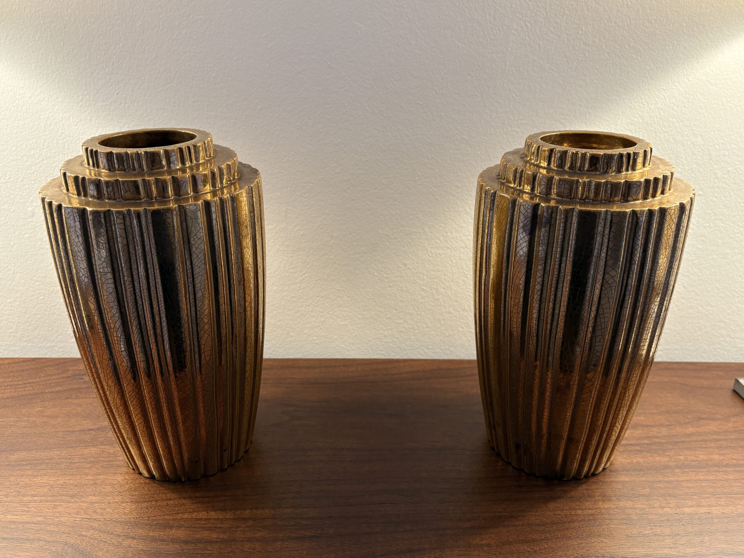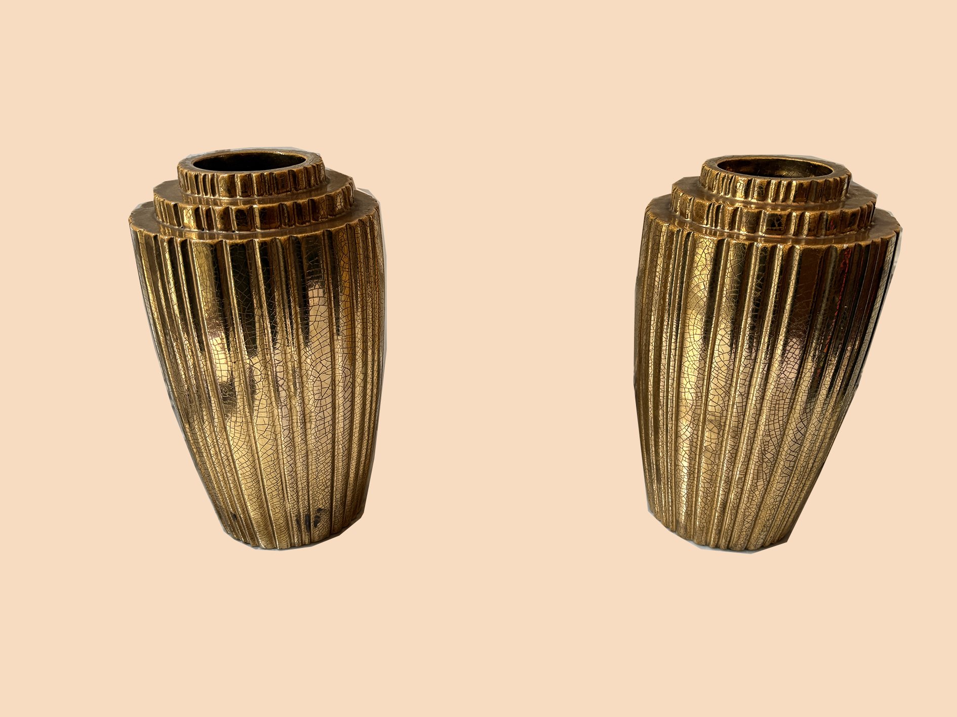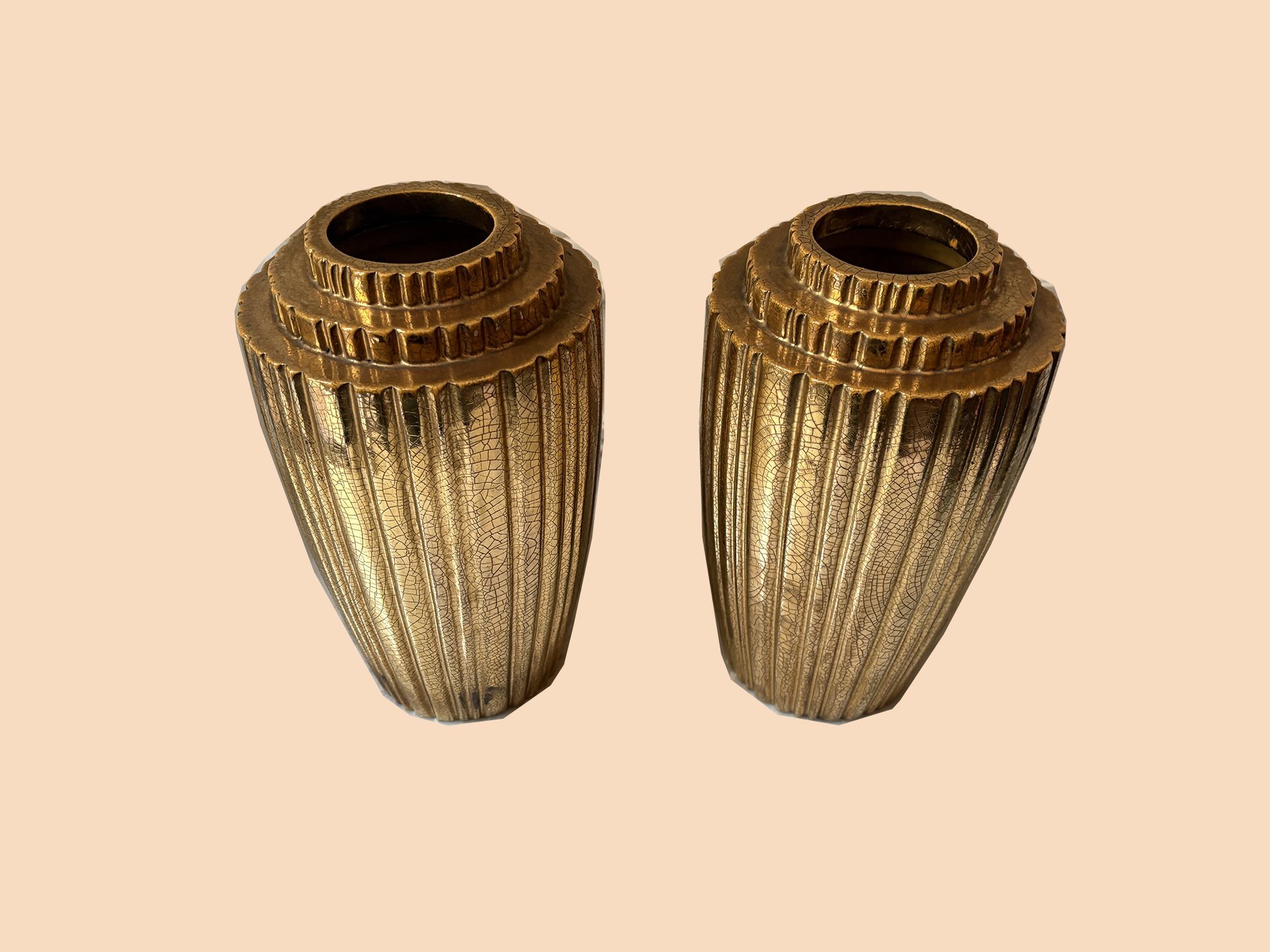 Paire de vases par Willy Vuilleumier (1898-1983). Céramique émaillée dorée et craquelée.