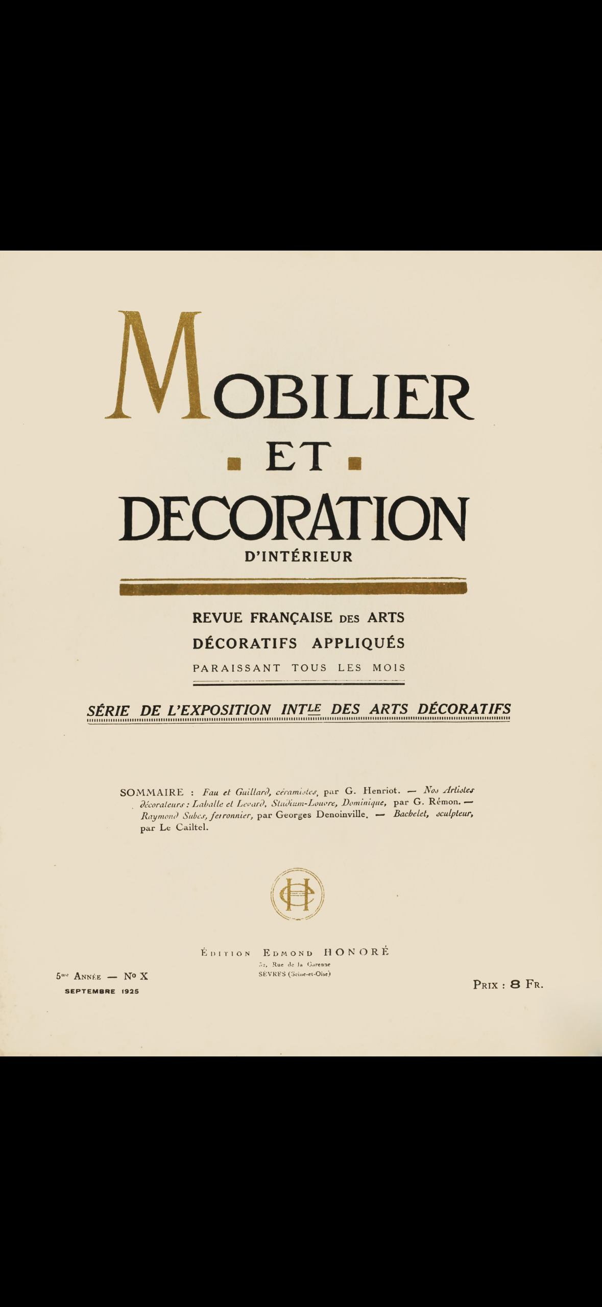 Mentionné dans le catalogue de l’exposition des arts décoratifs de Paris 1925