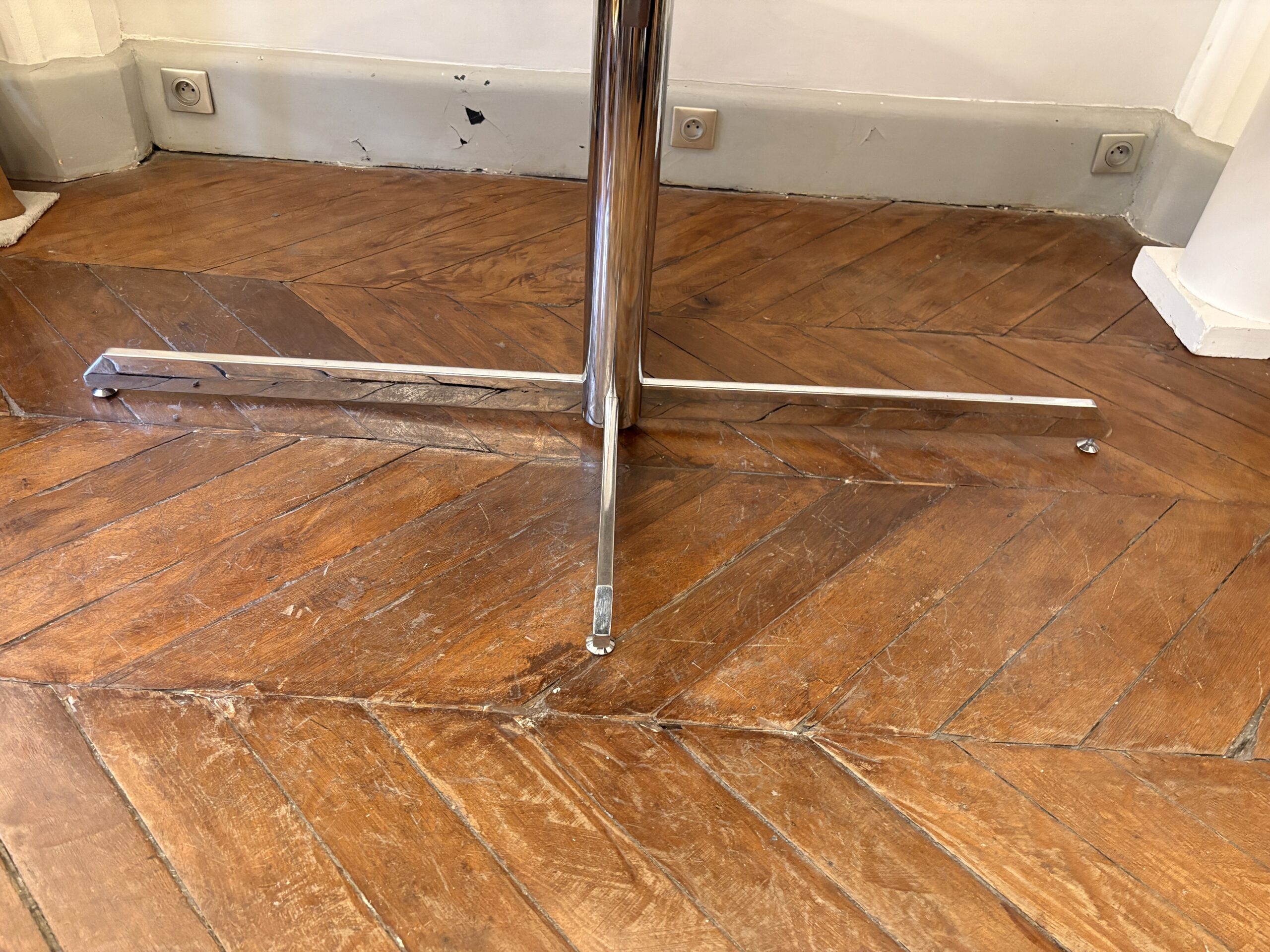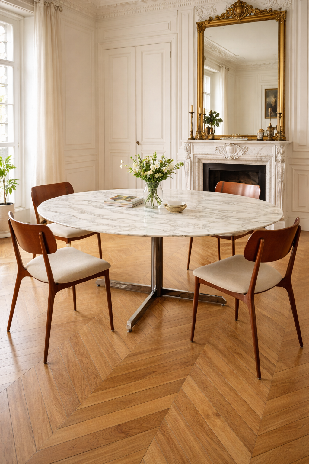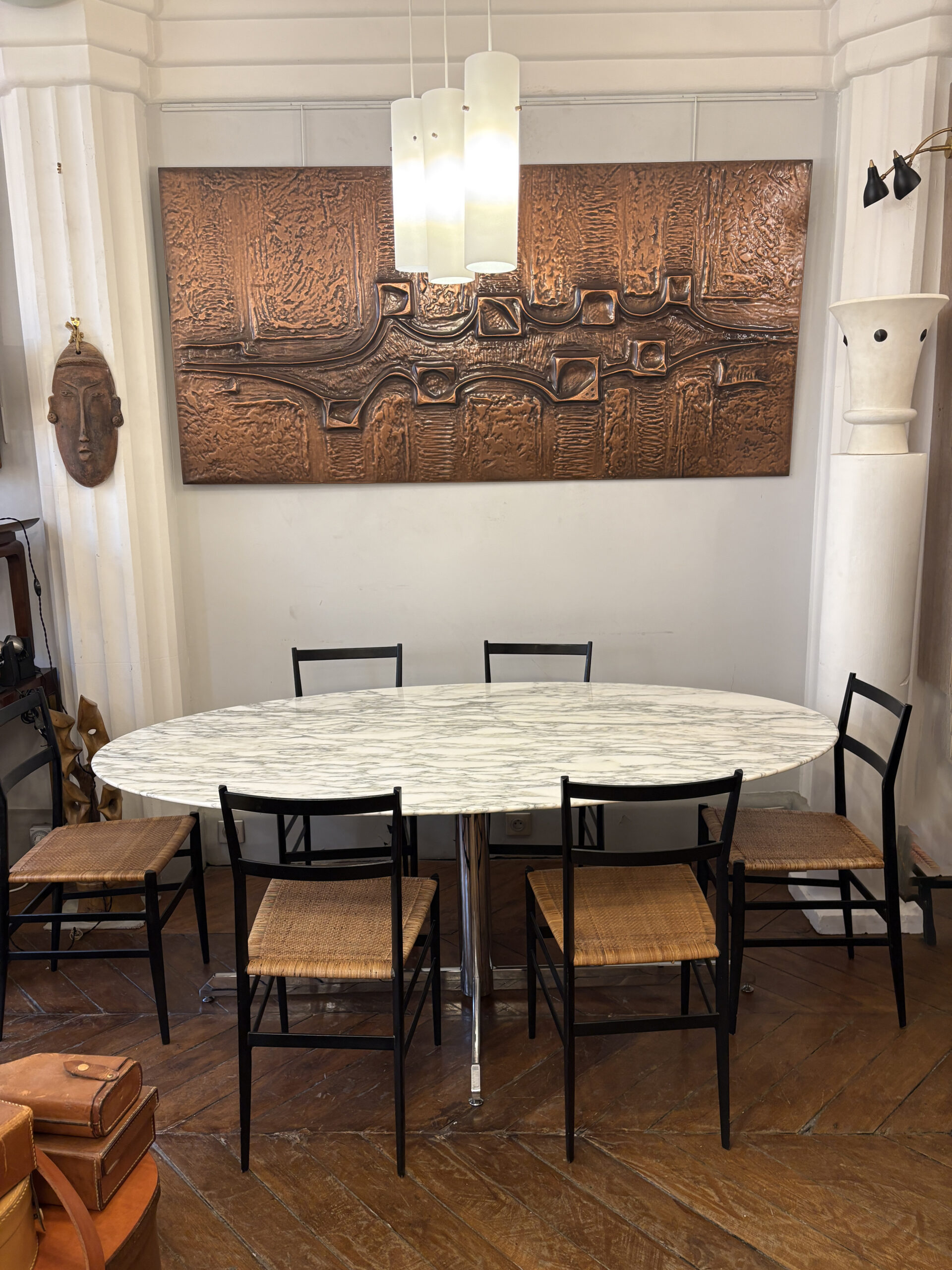 Table ovale Roche Bobois 1969 Plateau en marbre de Carrare pied en metal chromé