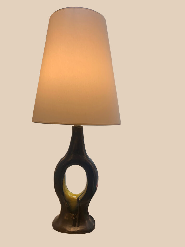 Lampe « Anneau » céramique émaillée noire et jaune